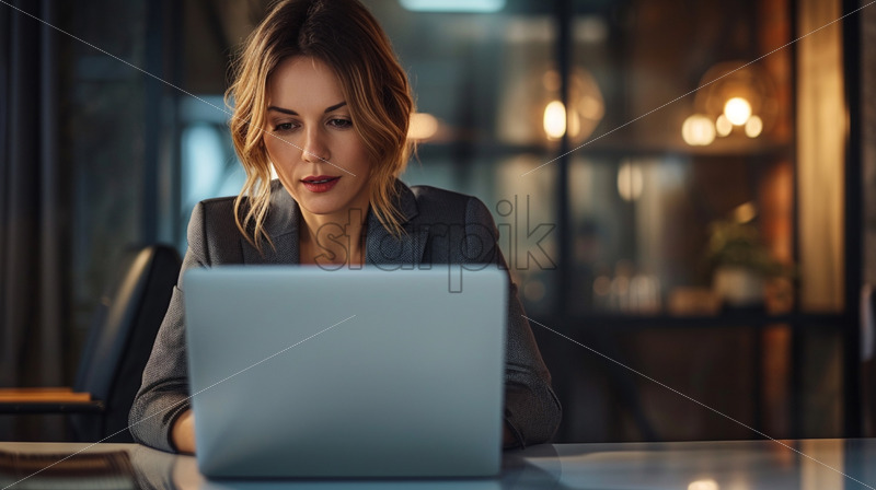 Home » Shop » Uncategorised » Portrait of a woman in professional attire working on a laptop at a clean desk