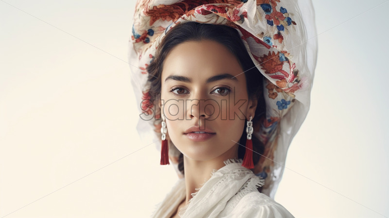 Portrait of a woman originating from Central America on a white background