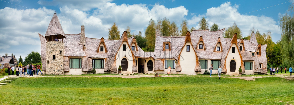 PORUMBACU DE SUS, ROMANIA – SEPTEMBER 18, 2021: Clay Castle, Fairy Valley, visitors, greenery