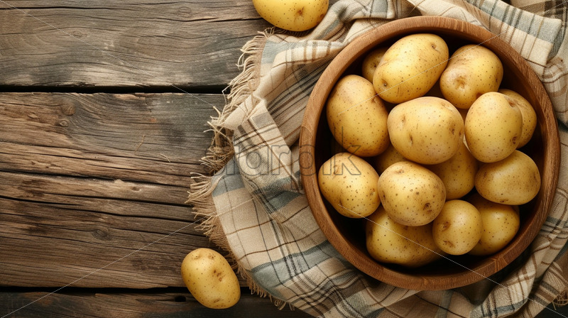Potatoes in a wooden bowl on a table