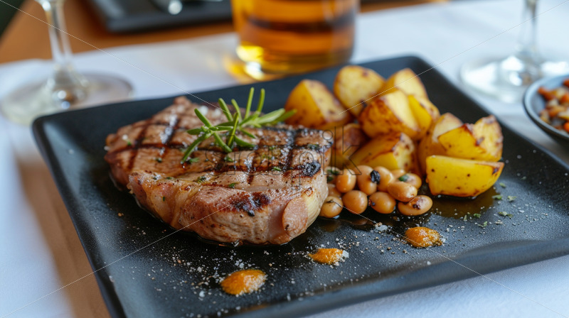 Potatoes with pork steak and beans