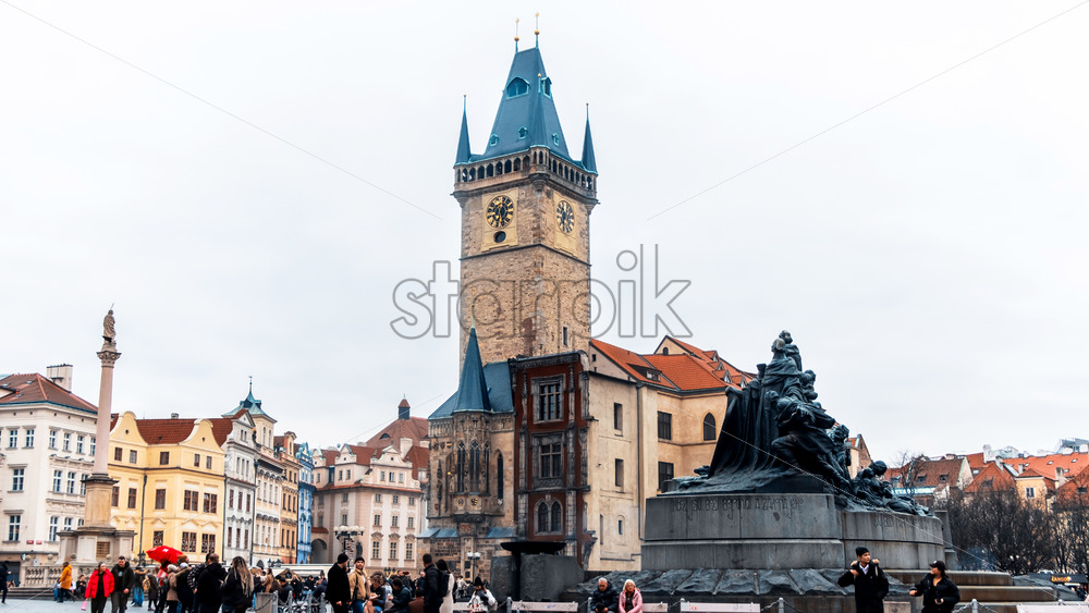 PRAGUE, CZECH REPUBLIC – FEBRUARY, 2023: Street view of the Old Town Square. People, Old Town Hall and classic buildings