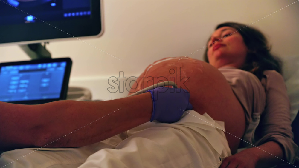 Pregnant woman undergoing an ultrasonography at a doctor’s office Royalty Free Stock Video Footage