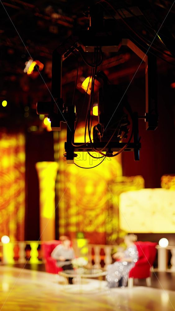 Professional camera filming a show on the backstage of a TV set Royalty Free Stock Video Footage Royalty Free Stock Video Footage