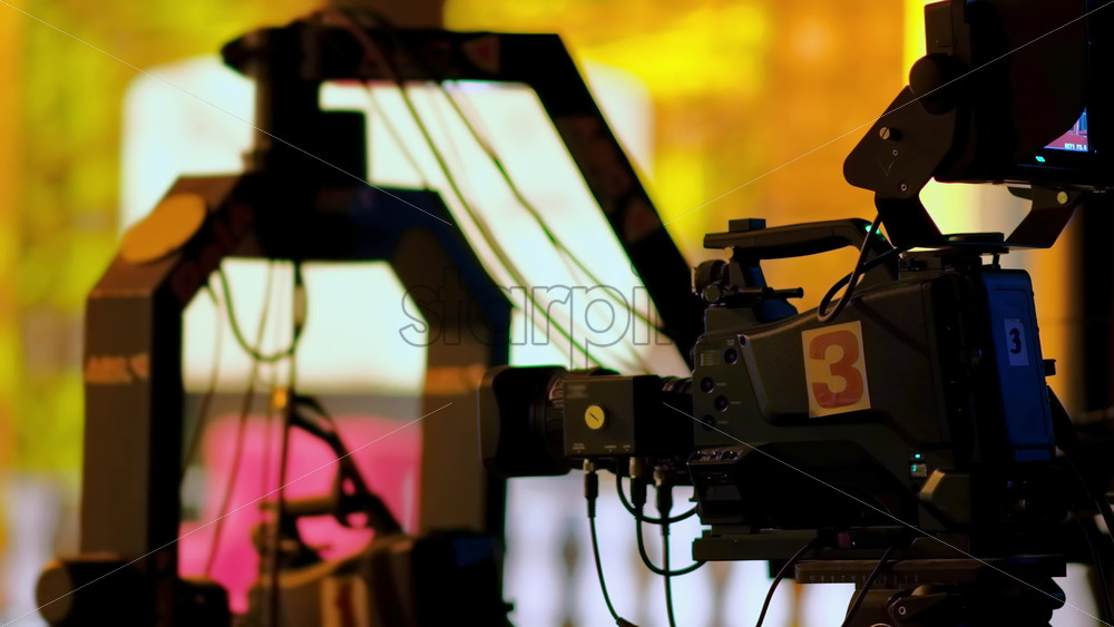 Professional camera filming a show on the backstage of a TV set Royalty Free Stock Video Footage Royalty Free Stock Video Footage
