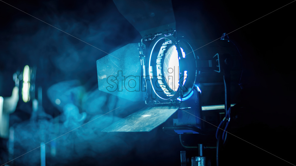 Professional lighting equipment on the movie set with smoke in the air Royalty Free Stock Video Footage