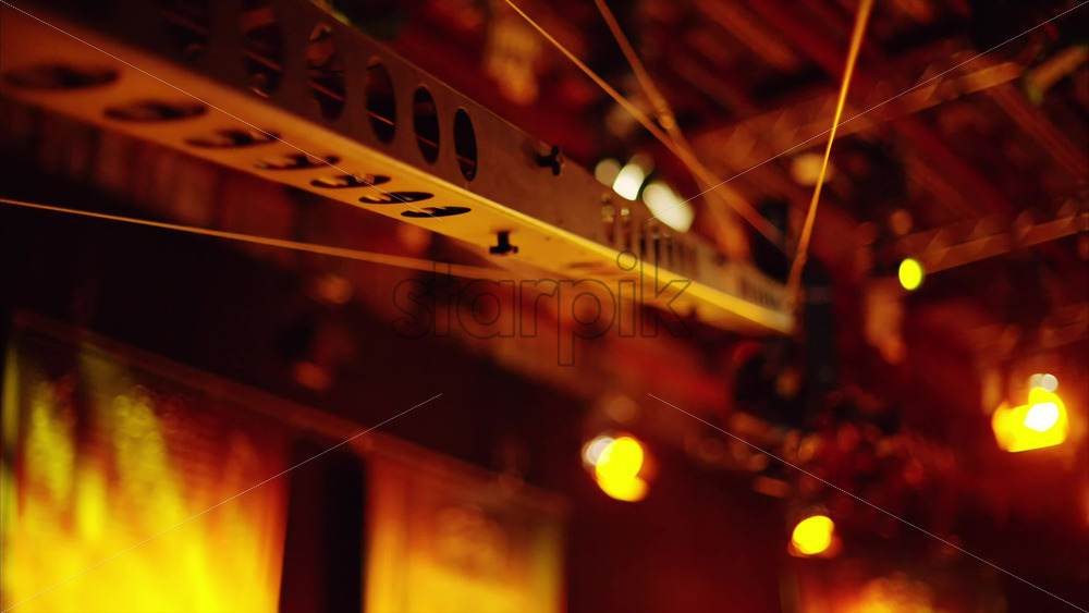 Flashing studio lights equipment on the ceiling of a TV set Royalty Free Stock Video Footage Royalty Free Stock Video Footage