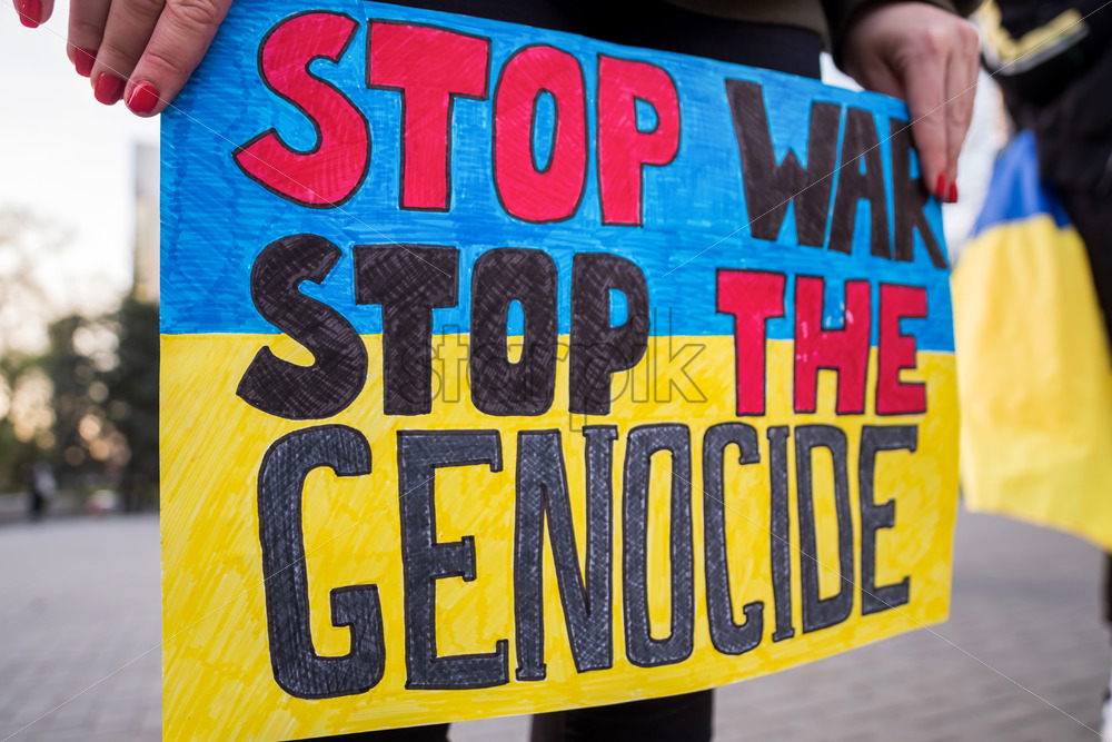 Protests against the Russian invasion of Ukraine in Chisinau, Moldova. A woman with poster