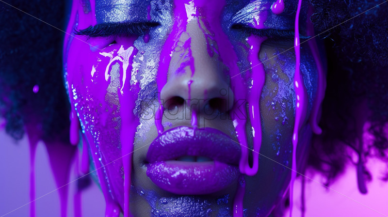 Woman painter wearing black clothes painting woman model face with hat drawing with red brush at a workshop Royalty Free Stock Video Footage