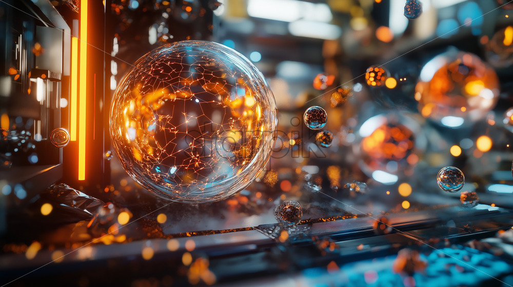 quantum art piece, showcasing abstract qubit superposition