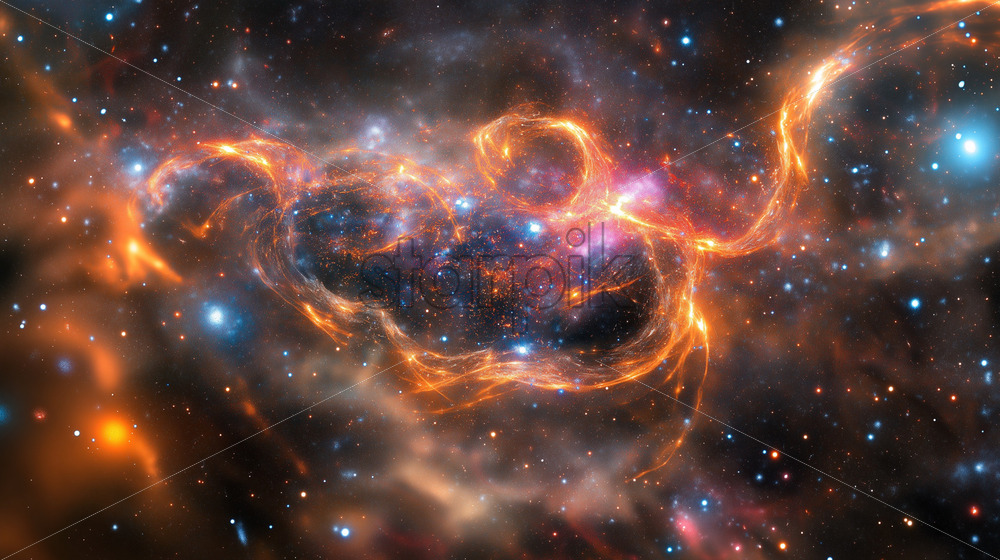 quantum spaceship surrounded by entangled particles in starry galaxy