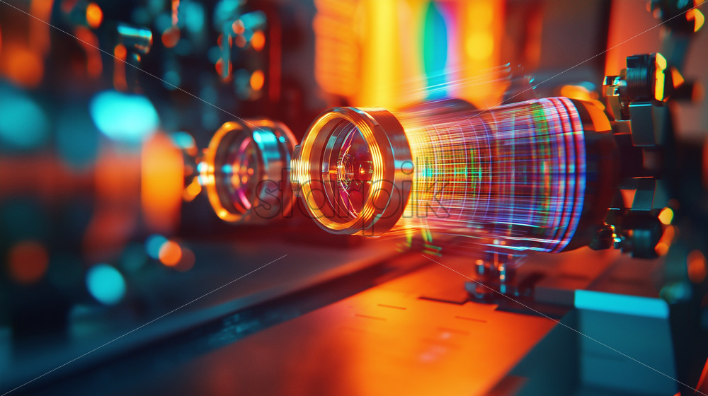 A person wearing a quantum suit, racing through a glowing tunnel of light