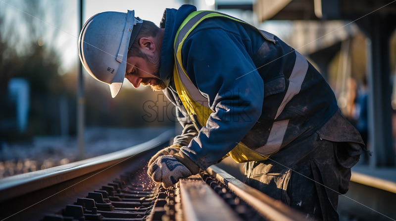Serious construction worker in the side of excavator on the country side wearing personal protective equipment and a construction outfit with hard hat on winter season