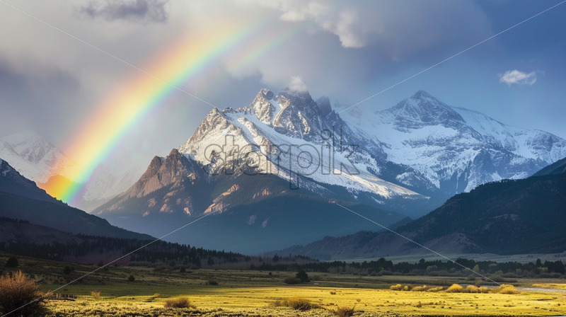 Rainbow over a mountainous area