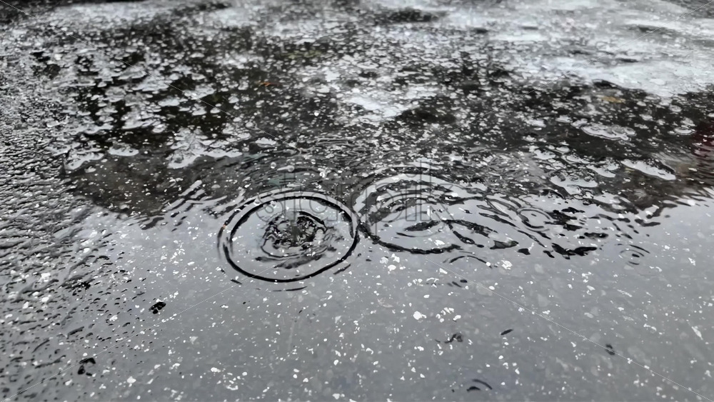Home » Shop » 1 Video » Raindrops hitting a dark asphalt surface, forming circular ripples and reflections during wet winter weather