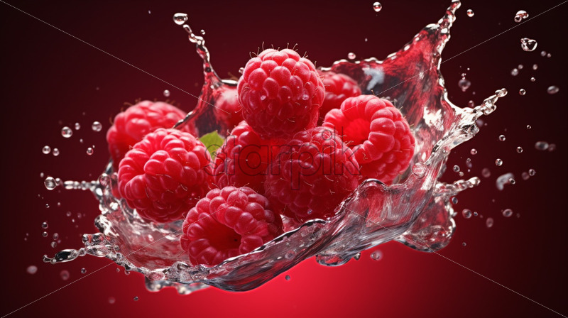 raspberry in water splash close up
