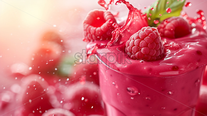 Raspberry smoothie, healthy and vibrant , with splash