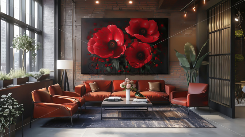 Modern house in the city , clear glass wall with office table and computer table and classy stair, an cinematic ambience with dark palette theme