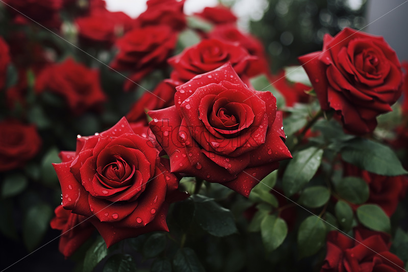 Close up photo of beautiful pink rose with drops of water in the rain.