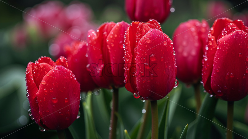 Red tulip flowers during the rain