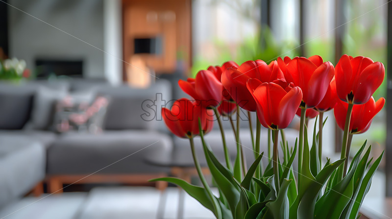 Red tulips in a modern interior