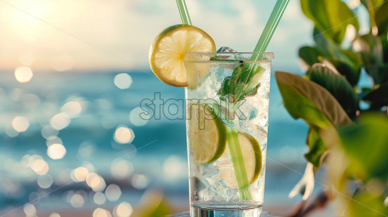Two bright orange cocktails with mint and passion fruit on a small wooden table at a beach club Royalty Free Stock Video Footage