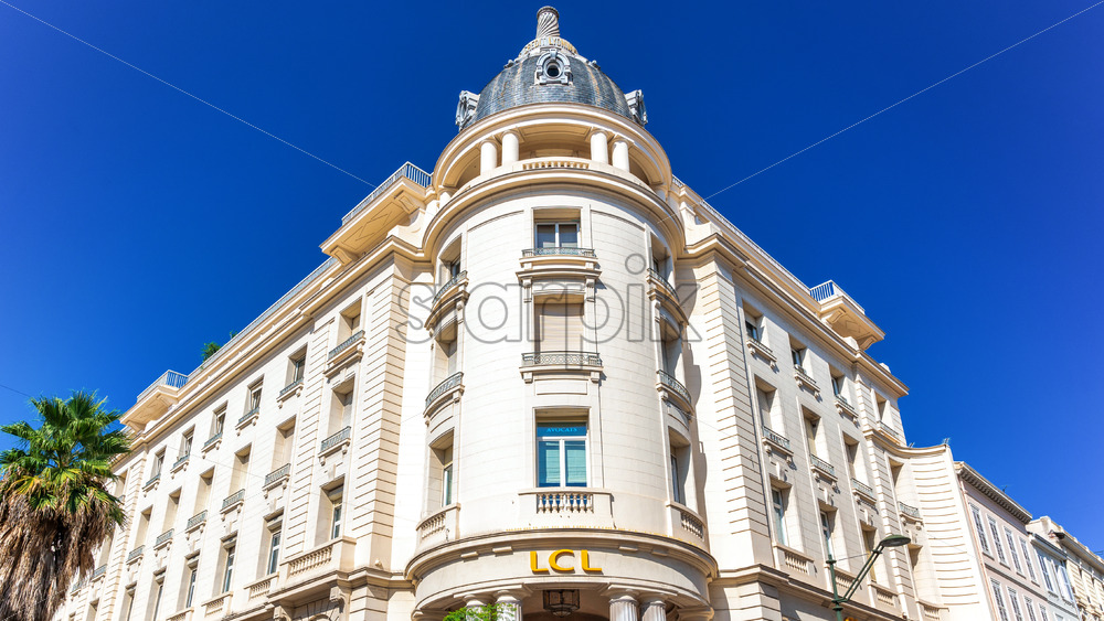 View of cannes, France. Multiple buildings made in traditional style, Institut Stanislas, a lot of greenery