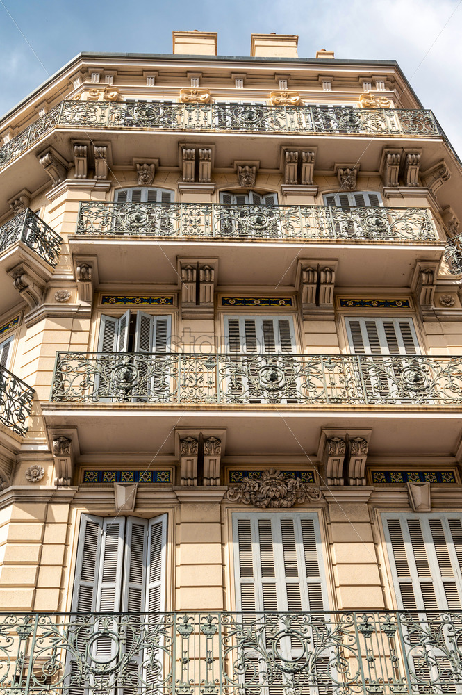 Residential building made in traditional style in Cannes, France. Vertical shot