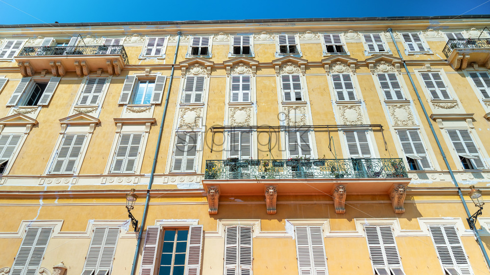 NICE, FRANCE – AUGUST 21, 2021: View of the sea port. Moored boats and yachts, embankment street with traditional buildings