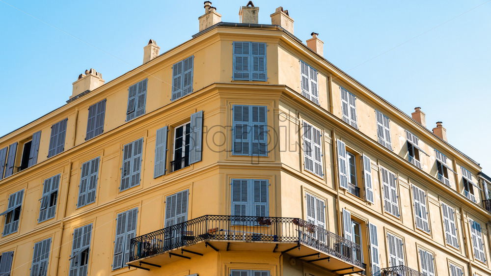 Residential building made in traditional style in Cannes, France. Vertical shot