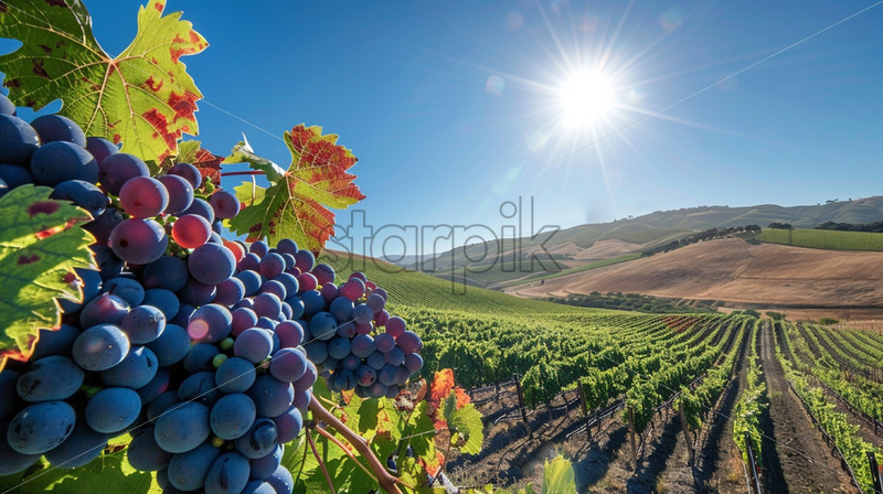 Grapes growing in the vine yard. Fresh sweet harvest in Autumn