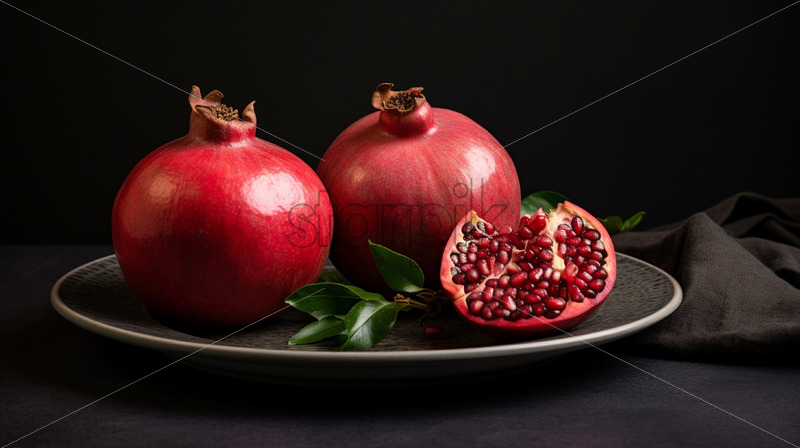 Home » Shop » Uncategorised » Ripe pomegranates on a ceramic plate