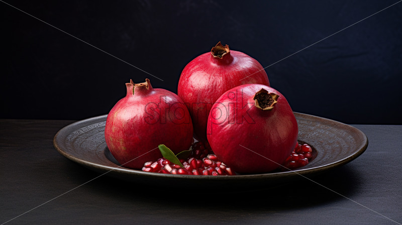 Home » Shop » Uncategorised » Ripe pomegranates on a ceramic plate