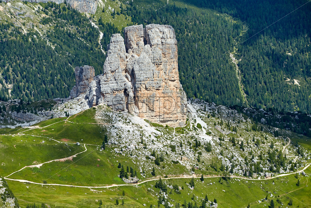 Dolomite Alps in Italy. View of mountains and greenery on slopes