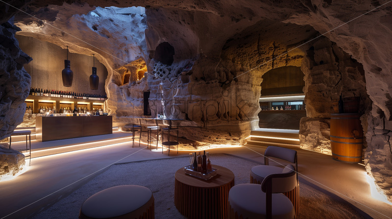 Delve into our underground wine cellar, nestled in natural rock formations, offering a rustic ambiance for wine tasting.