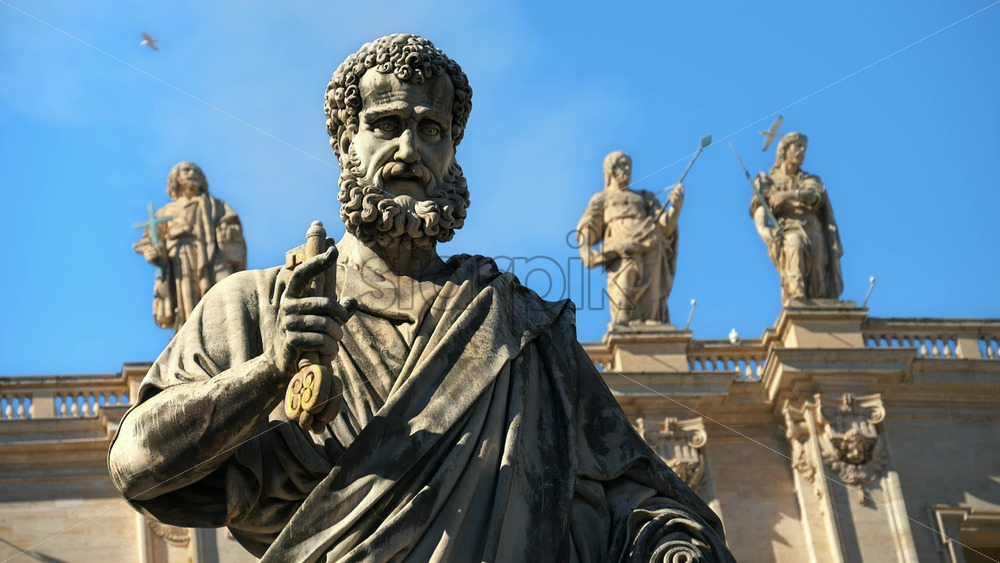 Rome, Italy – February 15, 2024: Statue of Founder Saint across the Saint Peter’s Basilica Royalty Free Stock Video Footage Royalty Free Stock Video Footage
