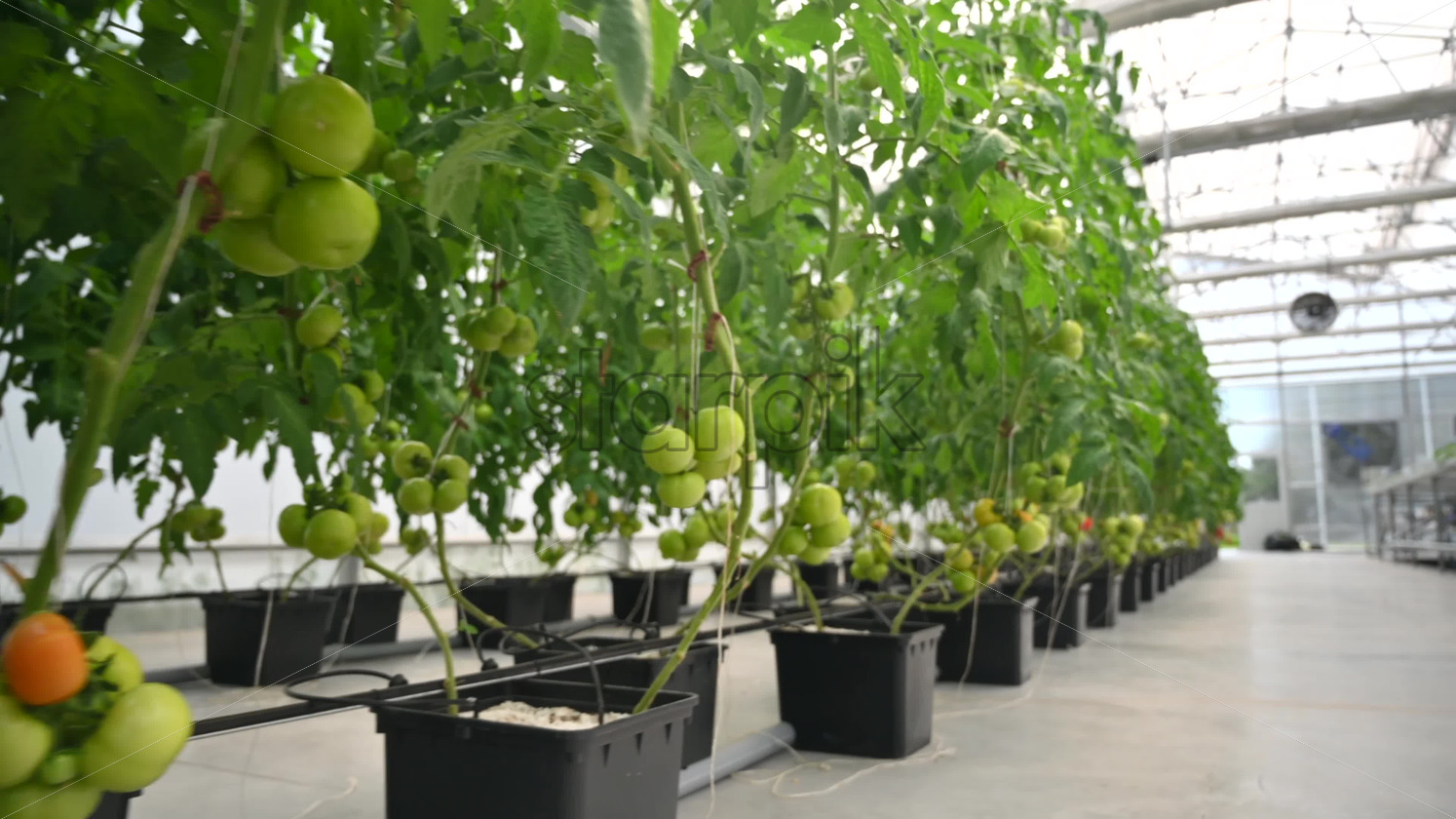 Rows of tomatoes growing in a greenhouse Royalty Free Stock Video Footage