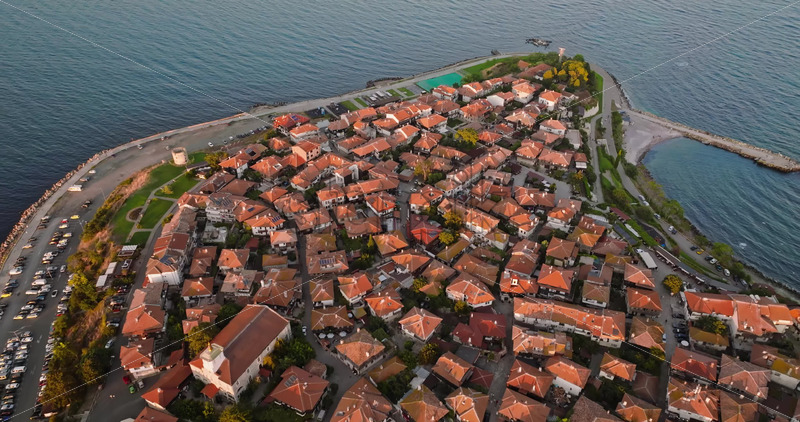 Royalty free stock footage Aerial drone view of the old town Nessebar, Bulgaria at sunset Royalty Free Stock Video Footage
