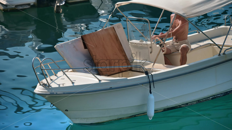 Royalty free stock footage Man moving in boat in the Port Vauban in Antibes, France Royalty Free Stock Video Footage