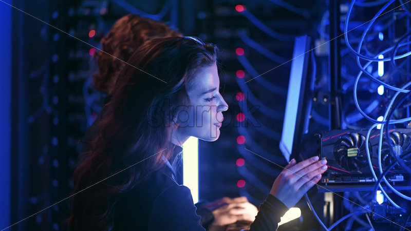Royalty free stock video A man and a woman programming in a server room Royalty Free Stock Video Footage