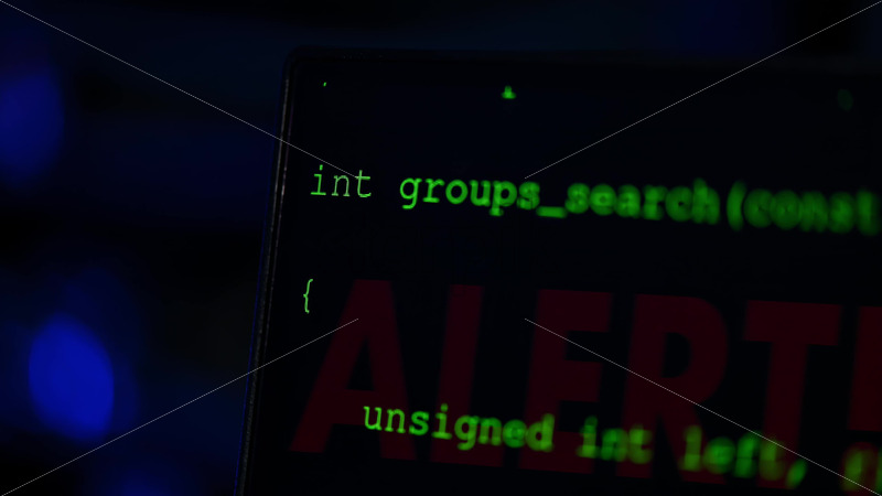 Royalty free stock video Close up of code on a screen in a server room with flashing red lights Royalty Free Stock Video Footage
