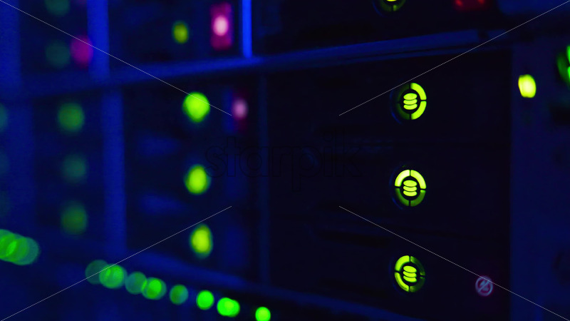 Royalty free stock video Close up of a server with flashing red lights in a data center Royalty Free Stock Video Footage