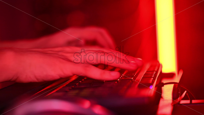 Royalty free stock video Close up of a man trying to fix an error on a computer in a server room Royalty Free Stock Video Footage