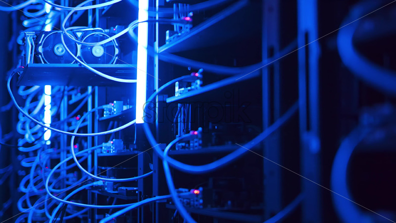 Royalty free stock video Close up of a rack-mounted server in data centre Royalty Free Stock Video Footage