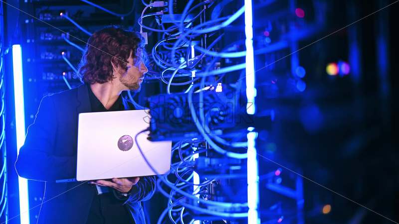 Royalty free stock video Man analysing data in a server room Royalty Free Stock Video Footage