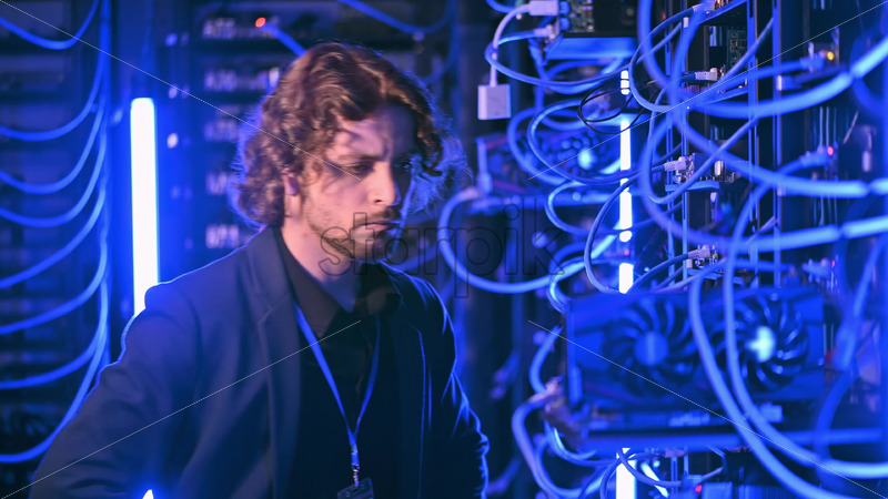 Royalty free stock video Man analysing servers in a data center Royalty Free Stock Video Footage