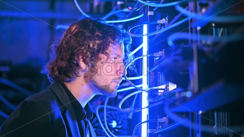 Royalty free stock video Man analysing servers in a data center Royalty Free Stock Video Footage