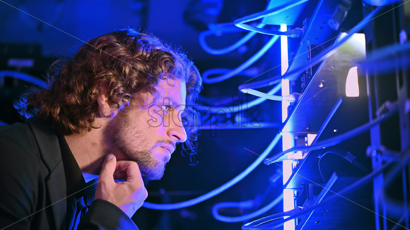 Royalty free stock video Man analysing servers in a data center Royalty Free Stock Video Footage