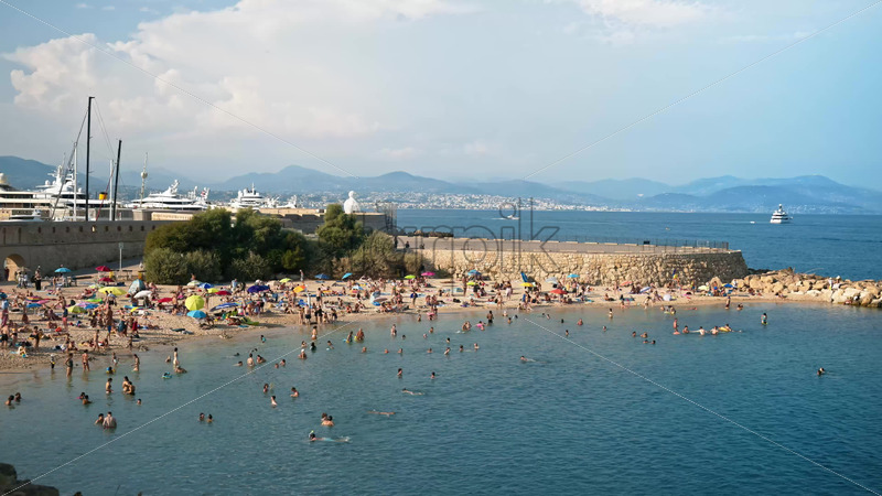 Royalty free stock video People swimming in the sea and relaxing on the beach in Antibes, France Royalty Free Stock Video Footage