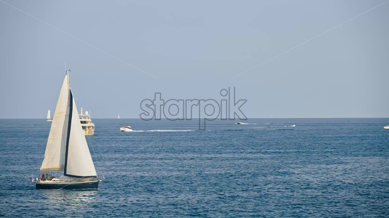 Royalty free stock video White boats moving on the sea in Antibes, France Royalty Free Stock Video Footage